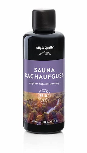 Allgaeu Quelle Sauna-Oil Creek Infusion is made of 100% organic, essential oils with following characteristics: LAVENDER With its intense scent lavender has an calming effect, which also makes you feel well-balanced and harmonized. JAPAN-CEDAR Calming like lavender Japan-cedar is mood-brightening and relaxing. TANGERINE A fruity touch by the motivating tangerine, wrapped around you and fruity.
