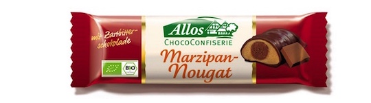 The highest quality Marzipan is made of honey and assorted almonds nothing else. Stuffed with an hazelnut-nougat-core and coated with dark chocolate Allos ChocoConfectionary Marzipan-Nougat Bar becomes one of the greatest delights.
