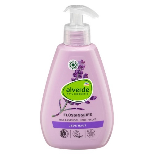 The composition of mild washing-active substances in the dm Alverde Liquid Soap Organic Lavender Organic Mallow cleans your hands gently and gently. The scent of lavender and mallow also pampers the senses - for a refreshing washing experience and well-groomed hands. Recipe without microplastics and water-soluble, purely synthetic polymers. Climate-neutral product including packaging, subsequently CO2-compensated by supporting a climate protection project.