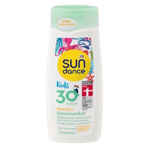 For particularly sun-sensitive, untanned and sensitive children's skin: The waterproof dm SUNdance Kids Sensitive Sun Lotion LSF 30 200ml protects immediately and reliably against sunburn. With regular use, it prevents premature, light-induced skin aging and pigment spots. In addition, it has a long-lasting effect against dehydration of the skin. The Sensitive Sun Lotion SPF 30 leaves the skin feeling pleasant.