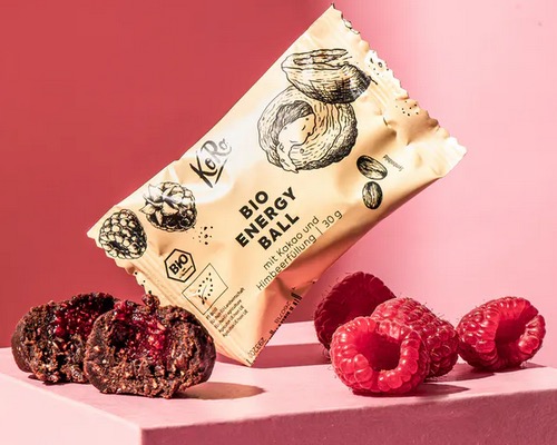 Do you love peanut butter & jelly? Then try it with hazelnut butter and jelly! In the KoRo variant Energy Ball Organic Cocoa Raspberry you get exactly that: A handy ball made of date paste, oat flakes, refined with cocoa nibs and cocoa powder and filled with a composition of hazelnut butter and heavenly berry fruit filling, sweetened with agave syrup. Tart chocolaty meets sweet and sour raspberry flavor. The contained cocoa nibs give a particularly wonderful crunch.