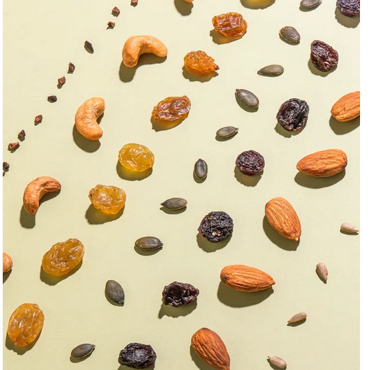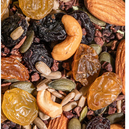 • Unusual mixture of raisins, nuts, seeds and cocoa nibs