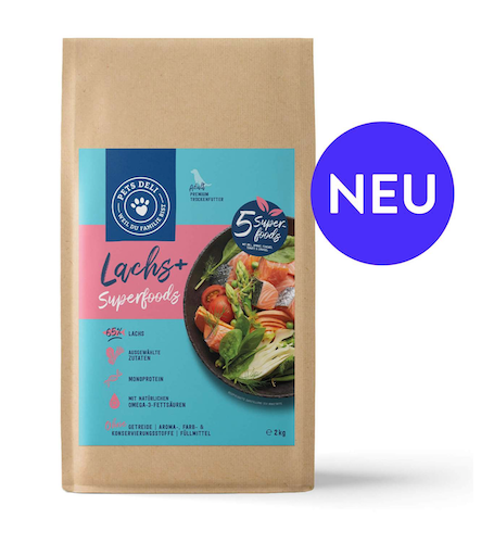 Our Pets Deli Superfood Animal Dry Food Salmon lives up to its name: Fresh salmon with important protein combined with the super power of dill, spinach, fennel, asparagus and tomato to create a delicous meal for your furry friend. For this Superfood Animal Dry Food we already chose ingredients which are well-known for their healthy content. Spinach is a giant of all vegetables. Iron supports the oxygen transport in the blood and helps to maintain the muscles. Fennel is well known to restore a bad digestion and provides also iron. Asparagus refines the delicious dish and provides folic acid as well as vitamins and minerals.