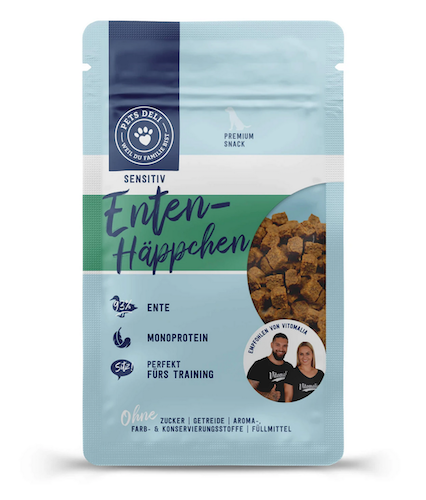 Our Pets Deli Snack Bits Duck Sensitive are bite-sized and are easy for your furry friends to enjoy. These premium softies are not just intense in their flavor, but also great for an efficient tranig since they got an irresistible scent. Juicy duck meat is naturally high in protein, an essential part for strong muscles while providing much energy. Further duck meat is high in essential vitamins like those from the B-group, which play an important role when talking about a well-working digestion. Our Snack Bits Sensitive are also suitable for sensitive stomachs and a real delight, as all types fit dogs with food allergies.