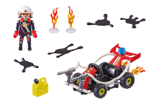 Flames often flare up high during a stunt show. However, if it should become too dangerous, the Stunt Show Fire Quad is ready and waiting. The maneuverable quad is equipped with two fire lances and can be quickly deployed at any location. With this quad even oil fires can be brought under control in no time. The set includes a Playmobil firefighter with helmet and gloves, a fire quad with fire hoses, canisters and other extras.